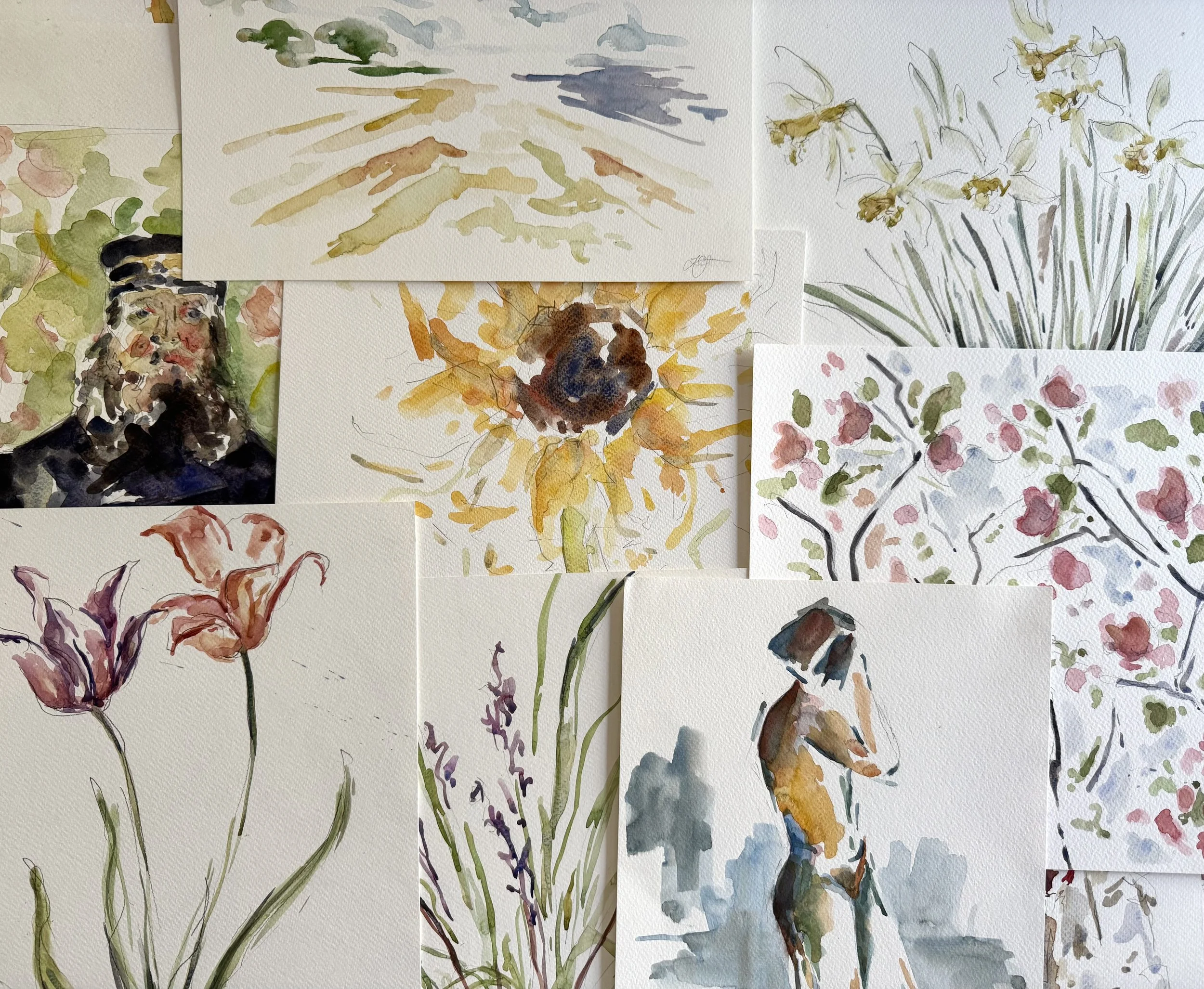 Hello! Iβm Clare, a painter working in watercolor and oil. I also accept commissions for custom paintings and make live drawings at private parties and corporate events.
