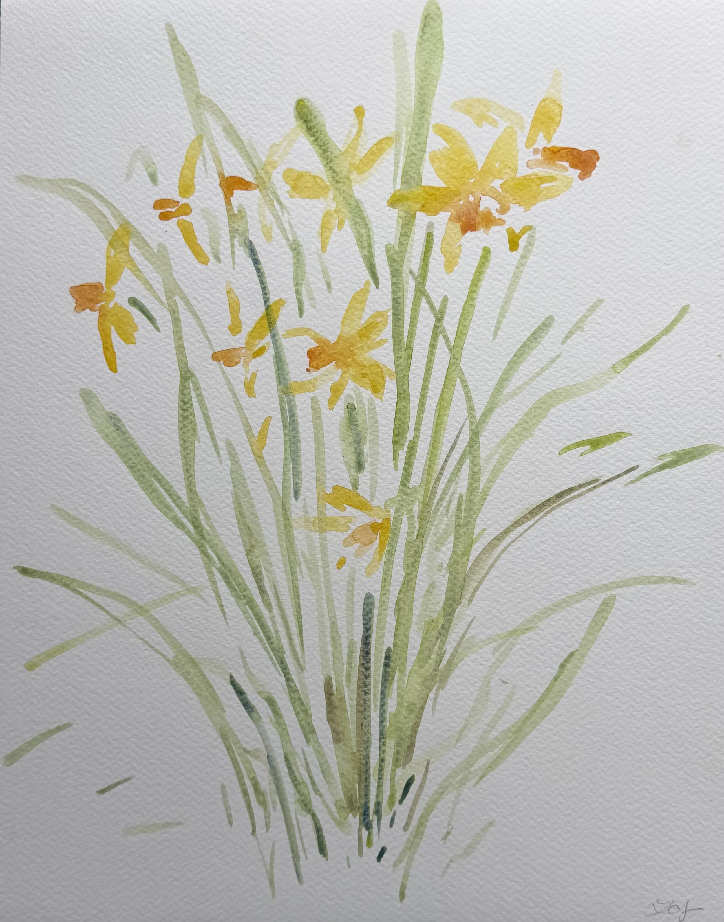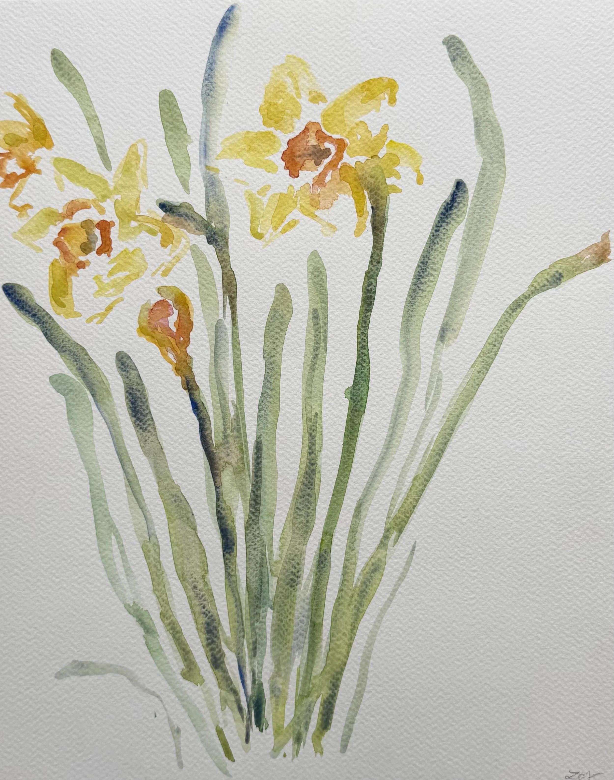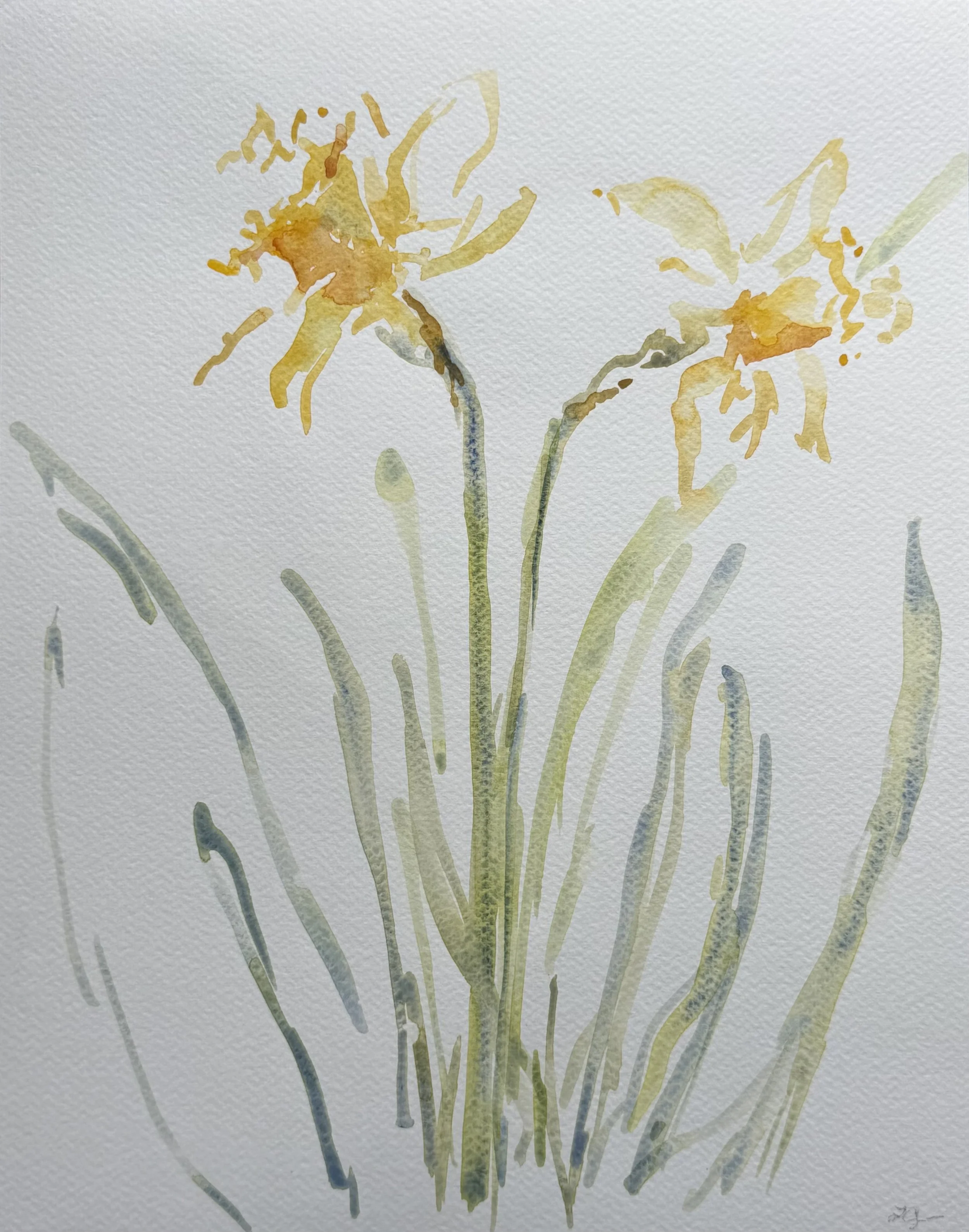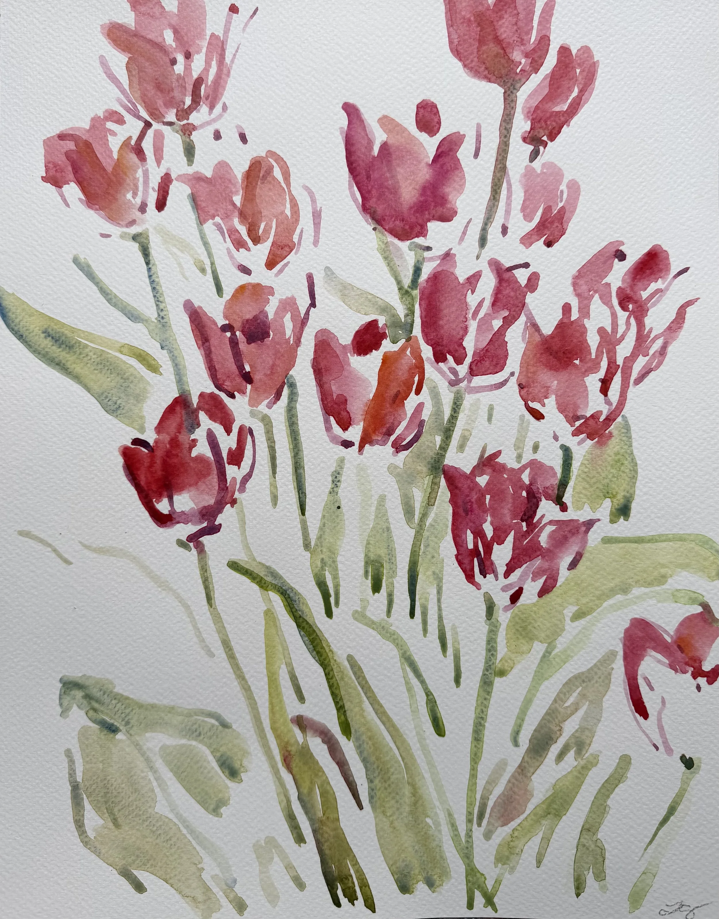 Every springtime, New York City erupts in glorious blooms. After a particularly brutal winter, I was especially glad to see them coming up through the earth this year and got my paints out to capture them as soon as I could. I set myself up in front of the flowers, usually by the Hudson River, and paint them right in front of me; a moving studio!
