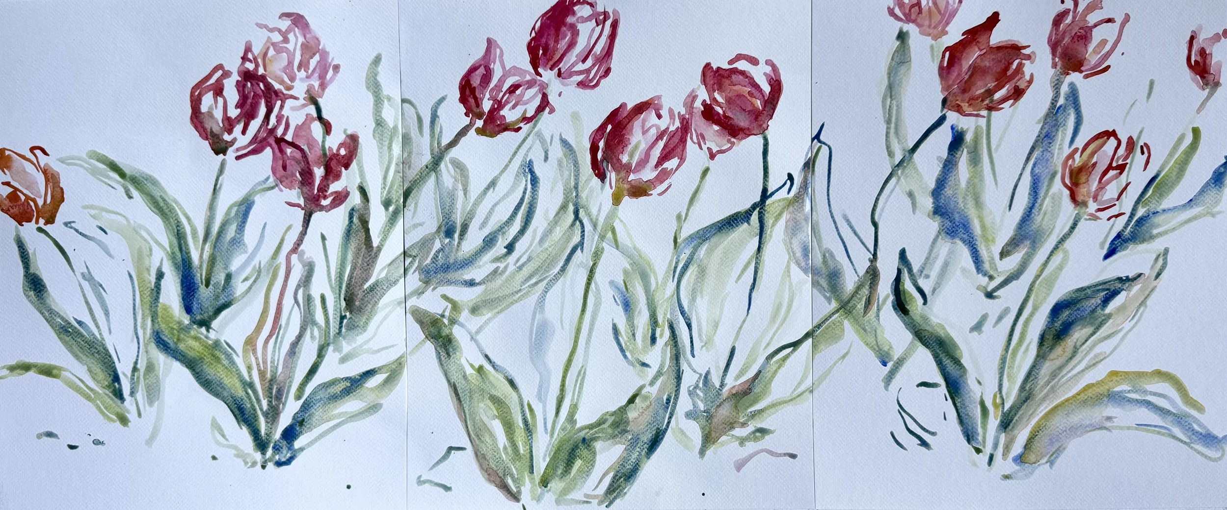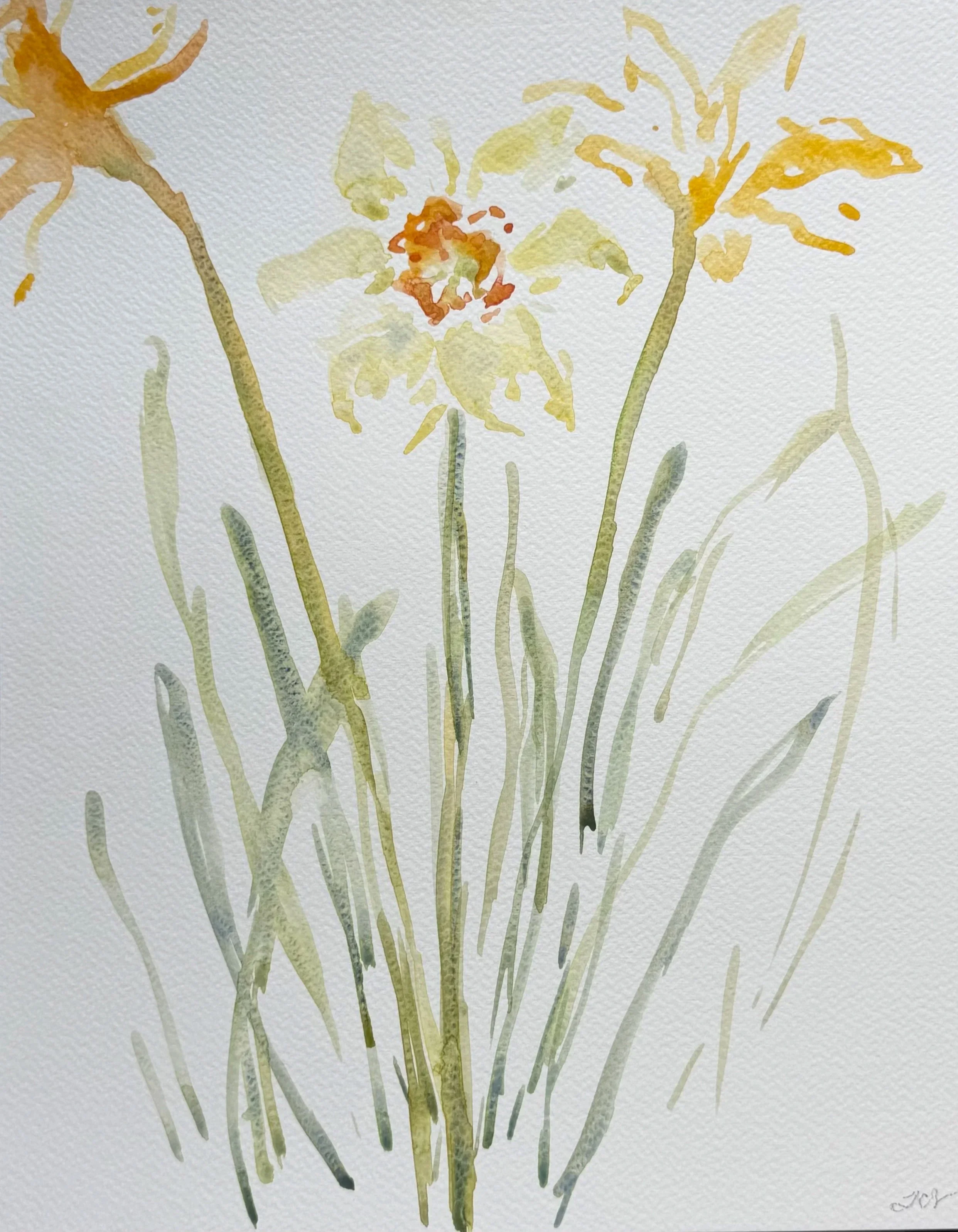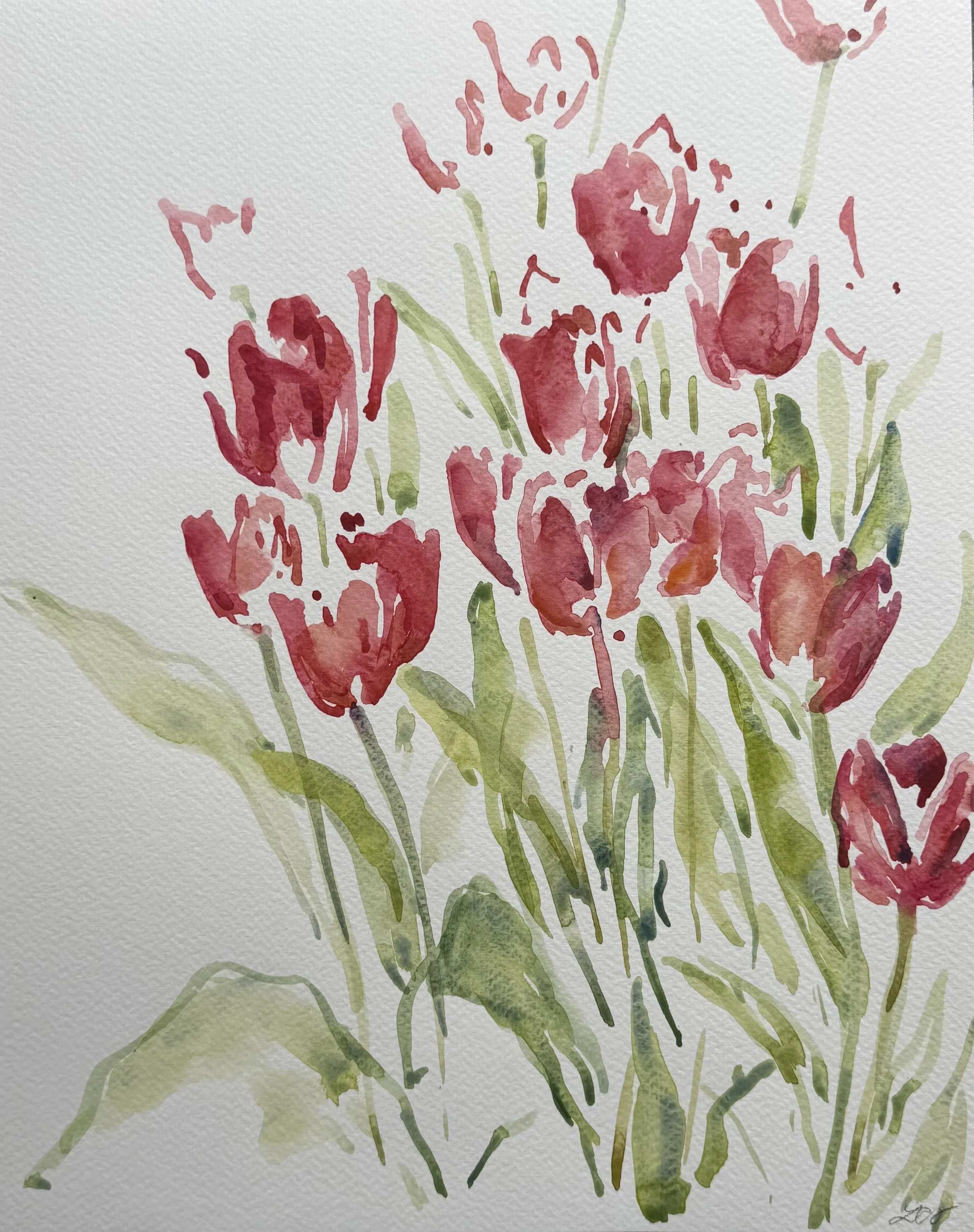 Every springtime, New York City erupts in glorious blooms. After a particularly brutal winter, I was especially glad to see them coming up through the earth this year and got my paints out to capture them as soon as I could. I set myself up in front of the flowers, usually by the Hudson River, and paint them right in front of me; a moving studio!