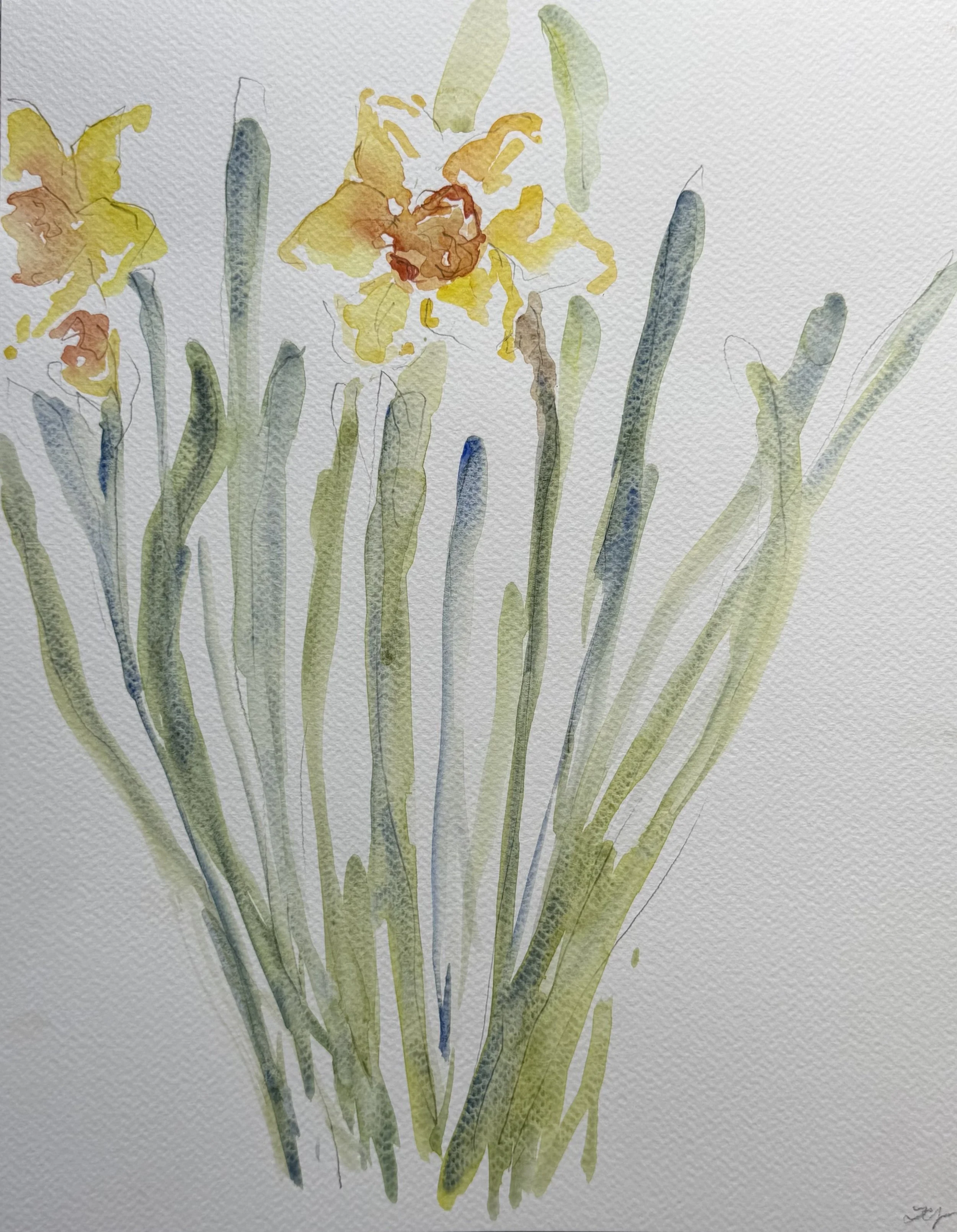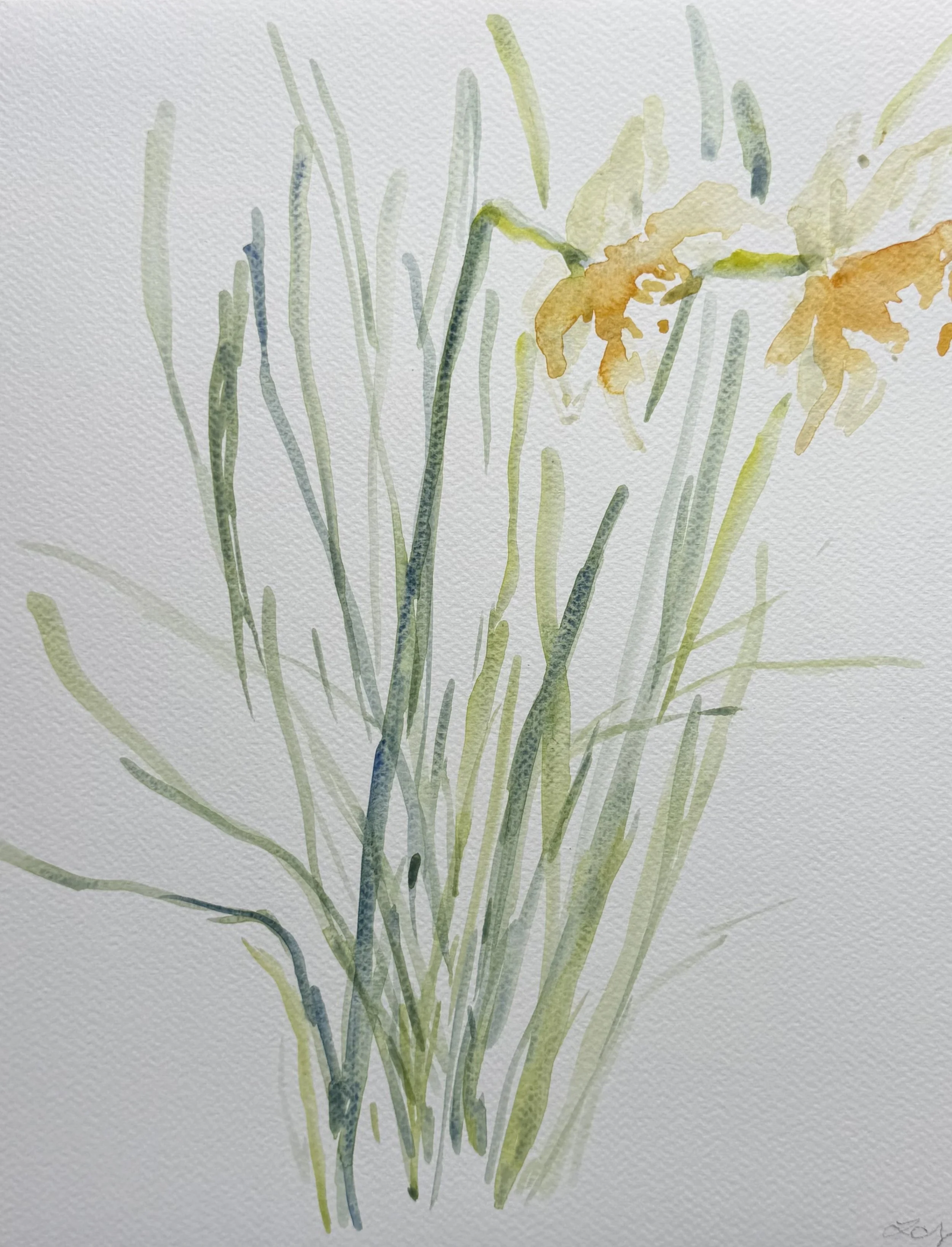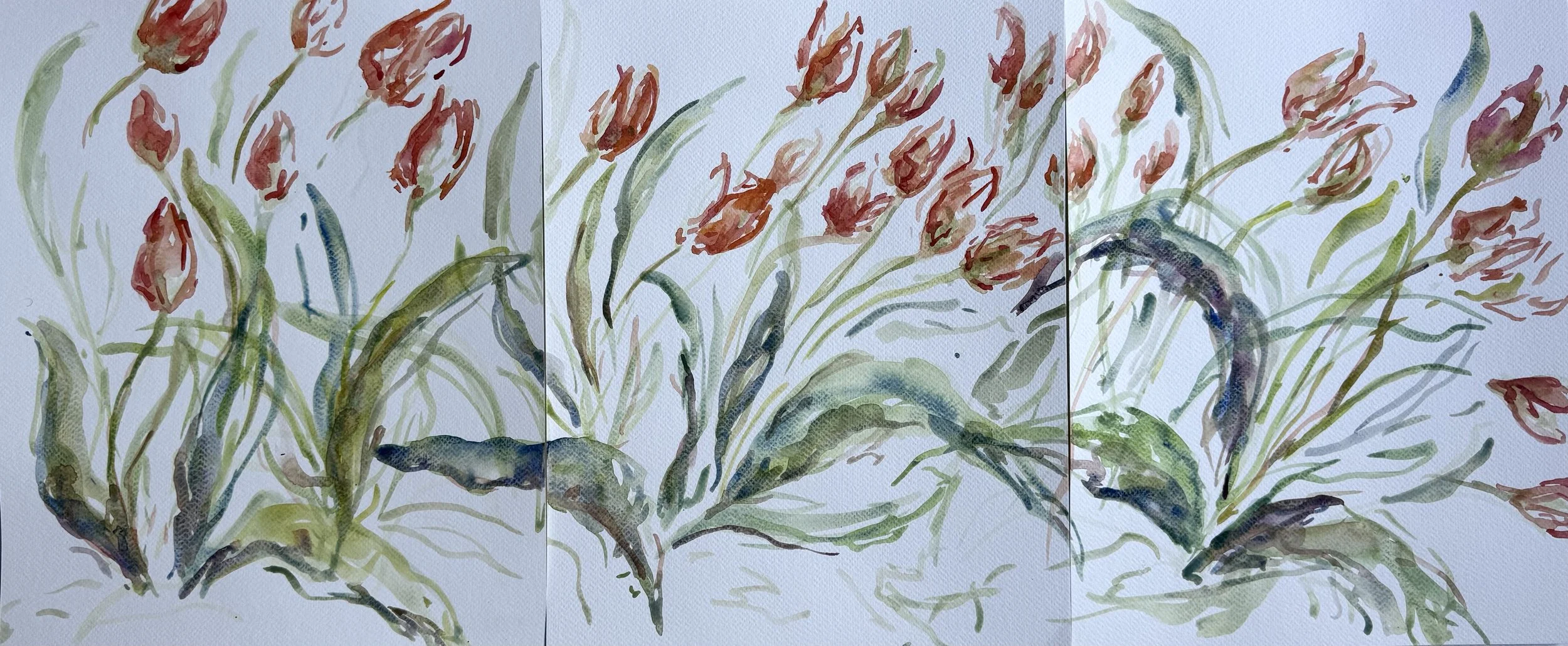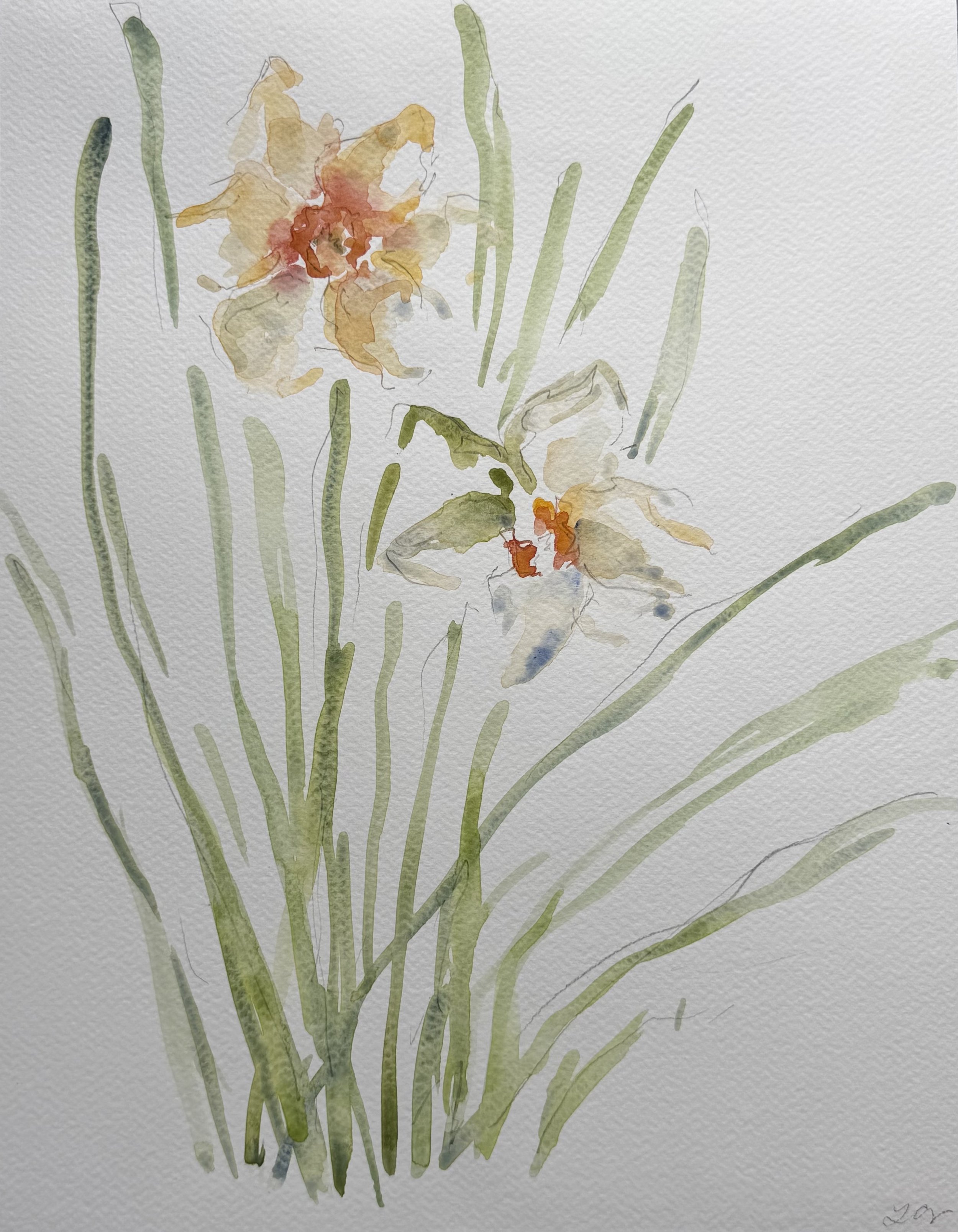 Every springtime, New York City erupts in glorious blooms. After a particularly brutal winter, I was especially glad to see them coming up through the earth this year and got my paints out to capture them as soon as I could. I set myself up in front of the flowers, usually by the Hudson River, and paint them right in front of me; a moving studio!